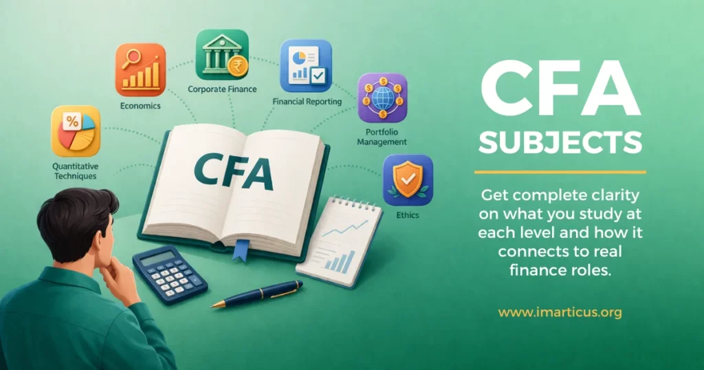The full CFA subject list covers ethics, quantitative analysis, economics, financial reporting, corporate finance, equity, fixed income, derivatives, alternatives, and portfolio management. Imarticus Learning maps each of these CFA course subjects to structured learning modules with weekly practice and doubt-clearing sessions.