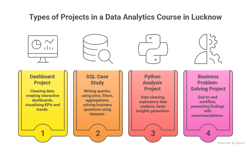 An advanced data analytics course in Lucknow extends this further into predictive analytics, cloud data tools like Google BigQuery and AWS Redshift, and sector-specific case studies in banking, healthcare, and retail. If you are targeting a senior analyst or data science role within two years of course completion, the advanced track is the right investment.
